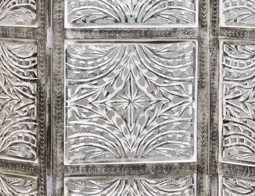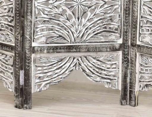 Parawan 3-panelowy wykonany w Indiach, ręcznie malowany, przecierany. Unikatowy i funkcjonalny element dekoracyjny, który znajdzie zastosowanie w każdym domowym pomieszczeniu - w szczególności w sypialni i łazience. Wymiar pojedynczego panela w parawanie: 50/2/180 cm.