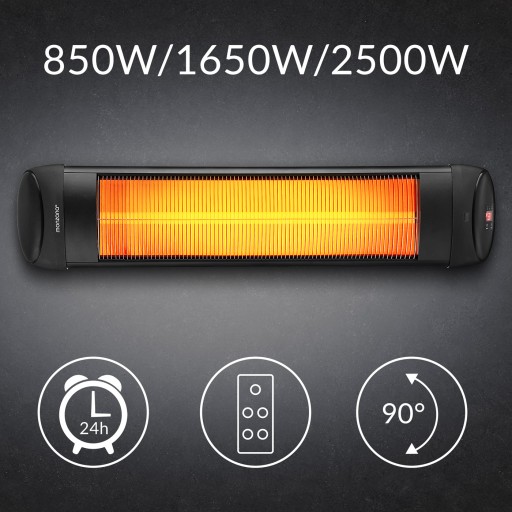 Nowoczesny promiennik o mocy 2500W firmy Monzana® pozwala skutecznie i szybko ogrzać zadaszoną powierzchnię zewnętrzną bez konieczności wstępnego podgrzewania.