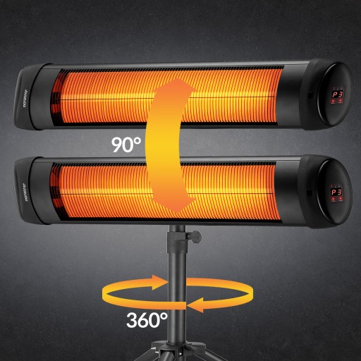 Za pomocą pilota można elastycznie wybierać między 3 stopniami ciepła i indywidualnie sterować promieniowaniem cieplnym dzięki regulowanemu kątowi nachylenia 90°.