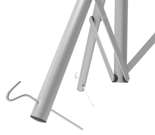 Bezinwazyjny stojak dla małych anten satelitarnych, idealny na kemping. Wygodne składanie i rozkładanie bez potrzeby posiadania kluczy. Część górna masztu jest wsuwana i regulowana na wysokość - może pozostawać na stałe przytwierdzona do anteny.