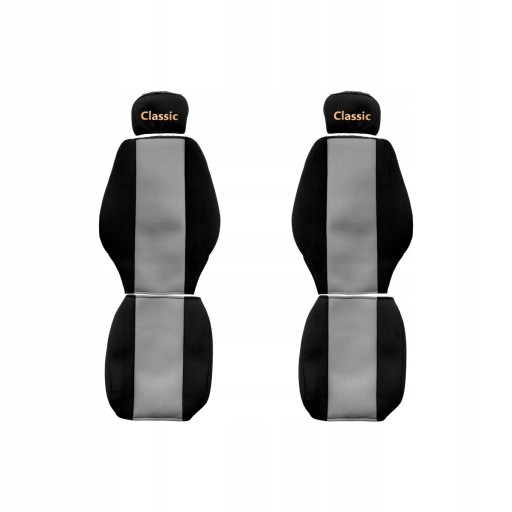 Pokrowce na siedzenia Classic (szary, materiał welur, seria CLASSIC, regulowany zagłówek kierowcy; regulowany zagłówek pasażera) MERCEDES ACTROS, ATEGO, AXOR 04.96-