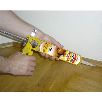 KIT DO PARKIETU SOUDAL - Uszczelniacz na bazie dyspersji akrylowych - w kolorach dopasowanych do najpopularniejszych gatunków parkietu. Kit do parkietu jest produktem, który znajduje powszechne zastosowanie przy maskowaniu różnego rodzaju szpar i pęknięć w podłogach wykonanych z elementów drewnianych, a także przy wypełnianiu ubytków, rys oraz szczelin połączeniowych m.in. w boazeriach, przepierzeniach oraz drewnianych framugach okiennych i drzwiowych. Kit do parkietu możemy ponadto wykorzystać do wykonania spoin pomiędzy ścianą a listwami przypodłogowymi lub ościeżnicowymi, jak również do wypełniania szczelin w okolicach progów i narożników.