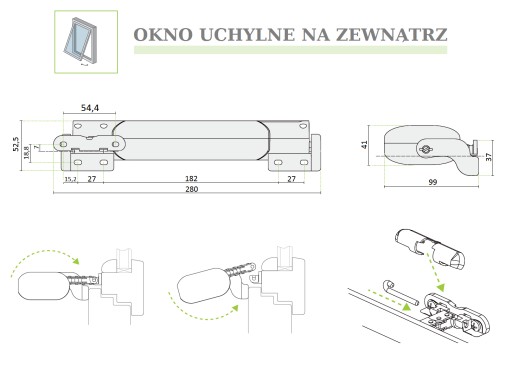 Idealne rozwiązanie do okien otwieranych na zewnątrz i do wewnątrz. Do stolarki z drewna, PCV, aluminium.