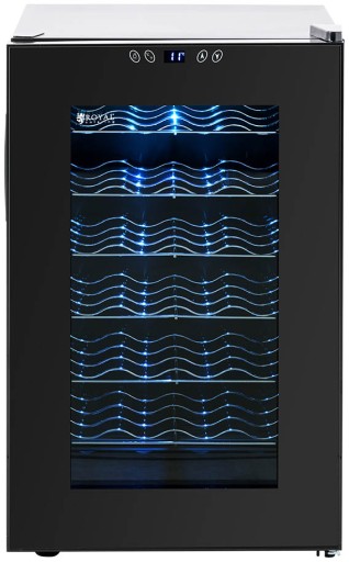 Lodówka do wina marki Royal Catering sprawdzi się do chłodzenia i prezentacji wody, soków, napojów czy wina. Duża pojemność 70 l pozwoli przechowywać butelki o różnych rozmiarach. Temperatura regulowana jest w zakresie 11-18°C. Urządzenie jest bardzo ciche, poziom hałasu wynosi zaledwie 26 dB. Oświetlenie LED pozwala atrakcyjnie zaprezentować produkty. Nóżki chłodziarki są regulowane w zakresie 10 mm. Obudowę wewnętrzną wykonano ze stali, zewnętrzną ze stali malowanej proszkowo. Drzwi wykonane zostały z dwuwarstwowego szkła hartowanego.