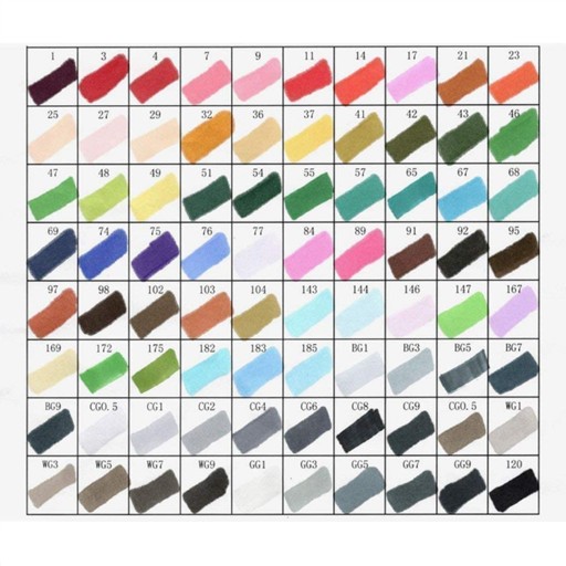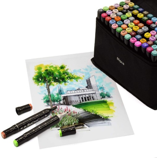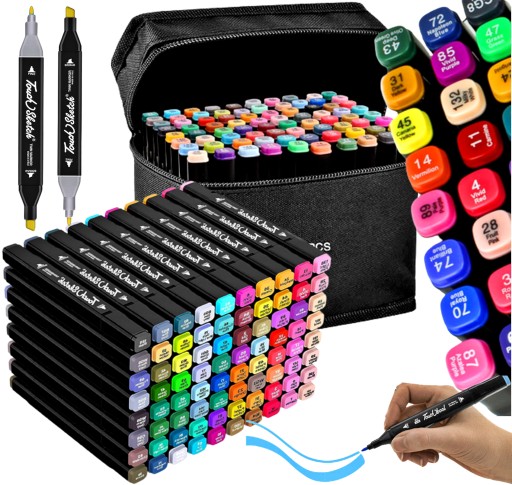 Zestaw 80 dwustronnych markerów w wyrazistych kolorach pobudzi wyobraźnię każdego początkującego i bardziej zaawansowanego artysty.