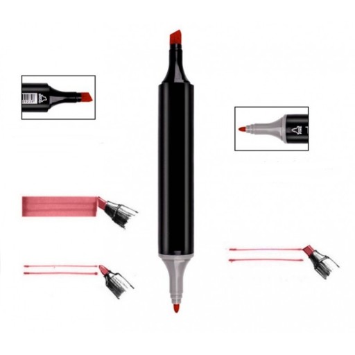 Dwie końcówki 3-6mm oraz 1.2mm, dają ogromne możliwości twórcze. Końcówki wykonano z odpornego na ścieranie tworzywa. Włókno końcówek nie rozwarstwia się, nie podcieka. Nasączony tuszem wkład gwarantujący równomierną dystrybucję tuszu - bez wysychania, wylewania i plam