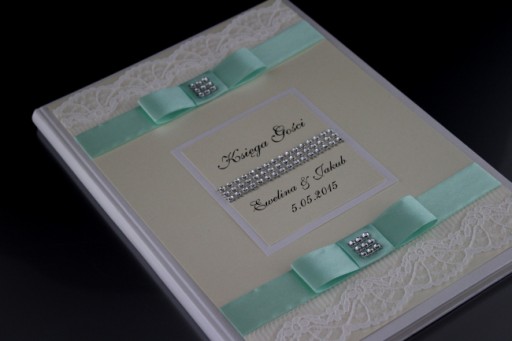 Księga Ślubna oraz użyte ozdoby wykonane są z wysokiej jakości materiałów. Wymiary księgi to 29,7 cm x 20,8 cm (format A4). Okładka księgi wykonana jest z metalizowanego papieru. Księga posiada 48 kartek (96 stron), co z pewnością wystarczy na wszystkie wpisy Waszych gości weselnych. Kartki wewnątrz księgi są grube - posiadają gramaturę 180 g/m.