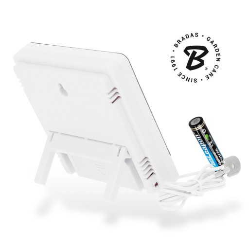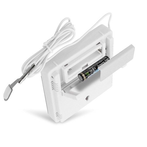 Urządzenie można postawić na płaskiej powierzchni lub zawiesić za pomocą otworu. Stacja zasilana jest baterią AAA - bateria znajduje się w zestawie!