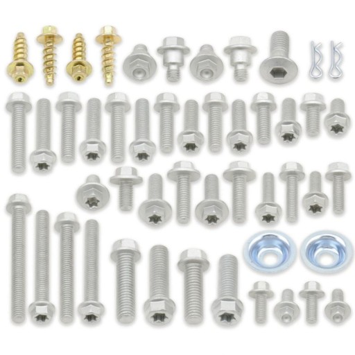 - zestaw Track Pack obejmuje śruby kołnierzowe Torx M6 i M8 oraz trudno dostępne śruby osłonowe, podkładki wklęsłe, klipsy hamulca hamulca typu Brembo, śruby ramy pomocniczej i śruby kołnierzowe M5