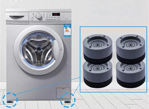 Podkładki wykonane z antypoślizgowej i dźwiękochłonnej gumy, chronią nie pralkę a także podłogę. Amortyzują mikro wstrząsy, dzięki czemu przedłużają jej żywotność
