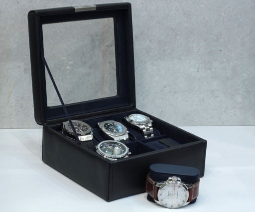 - duże poduszki na zegarki z uchwytami ze skóry do ich łatwego wyciągania.