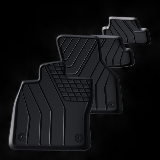 - Dywaniki są koloru czarnego i posiadają nowoczesny i stylowy wzór o matowym wykończeniu. Każdy zestaw jest wykonany na miarę do danego modelu i generacji auta, co zapewnia idealne dopasowanie do podłogi. W zestawie przewidziane są także stopery, jeśli występują one w danym modelu samochodu.