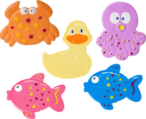 Mini maty zostały wykonane z wysokiej jakości gumy, w żywych kolorach, przedstawiające wesołe zwierzaki, które sprawią, że maluch chętniej będzie się kąpał.