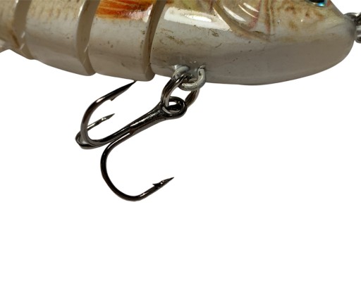 Sześć części ryby zostały połączone elastyczną taśmą zapewniają ruchy w kształcie litery "S", co sprawia, że już nie jeden szczupak nabrał się na tą znakomitą przynętę.
