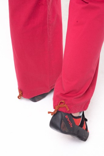 Ultralekkie luźno skrojone, damskie spodnie wspinaczkowe wyposażone w szeroki, elastyczny i nieuciskający pas. Rewelacyjnie trzymają się w miejscu podczas najbardziej wymagających manewrów w pionie, oferując pełną swobodę ruchu, a co za tym idzie – największy komfort użytkowania.