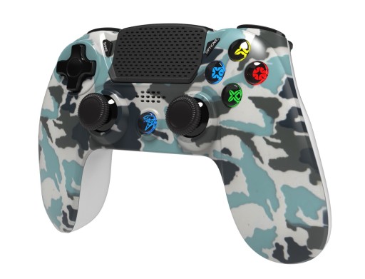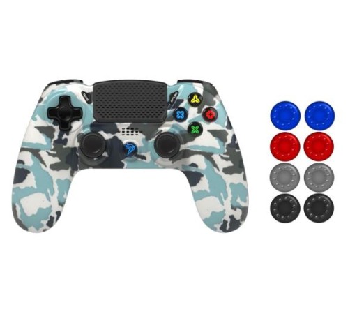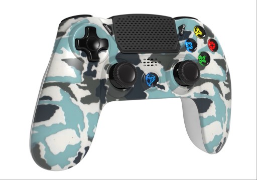 Kontroler COBRA QSP414 to akcesorium, dzięki któremu gra na urządzeniu PlayStation 4 stanie się jeszcze większą przyjemnością. Sprzęt ten wyposażony został w ergonomiczne przyciski, podświetlany przycisk HOME, przyciski boczne oraz przednia płyta, a także dwa silniki wibracyjne.