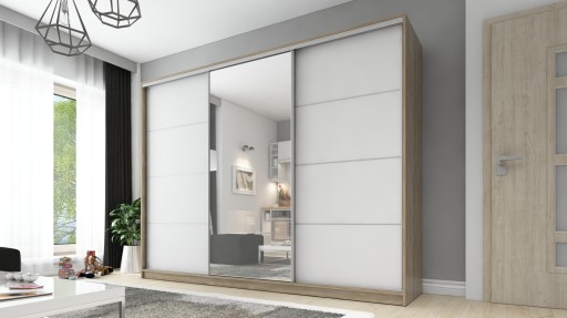 DMSM to bardzo pojemna, trzydrzwiowa szafa, która dzięki praktycznemu designowi i możliwościom konfiguracji wpasuje się do każdego wnętrza. Mebel wyposażony jest w niezawodny system drzwi przesuwnych, 4 pojemne szuflady oraz 1 lustro.