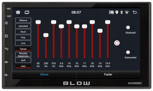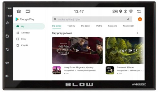 Radio samochodowe marki Blow z multimedialnym systemem oraz 7 calowym , kolorowym i dotykowym wyświetlaczem umożliwia odtwarzanie radia RDS FM/AM , muzyki , filmów a także obrazów. Wbudowana funkcja Bluetooth oraz wejścia USB , AUX-in dają nieograniczone możliwości odtwarzania plików z wielu źródeł a dotykowy ekran oraz funkcjonalny pilot dołączony do zestawu zapewniają wygodną i pełną kontrolę nad urządzeniem. Ponadto wersja AVH-9930 umożliwia łączenie się z siecią za pomocą Wi-Fi oraz posiada zainstalowany system Android