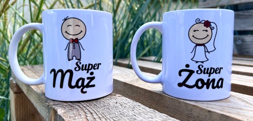 w zestawie dla pary z obustronnym nadrukiem Super Mąż, Super Żona.