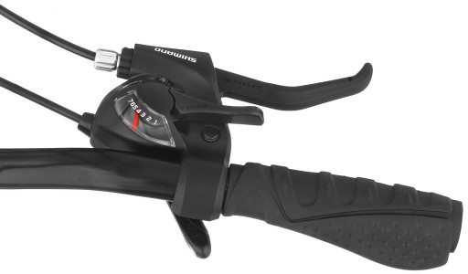 Rower został wyposażony w przerzutki - przednia Shimano TY-510 i tylna Shimano RD-TY300D, które zapewniają wysoką kulturę pracy i cichą zmianę biegów. 21 biegów doskonale się sprawdzi na zróżnicowanym terenie i podczas zmiennej pogody, przez co jazda będzie mniej wymagająca.