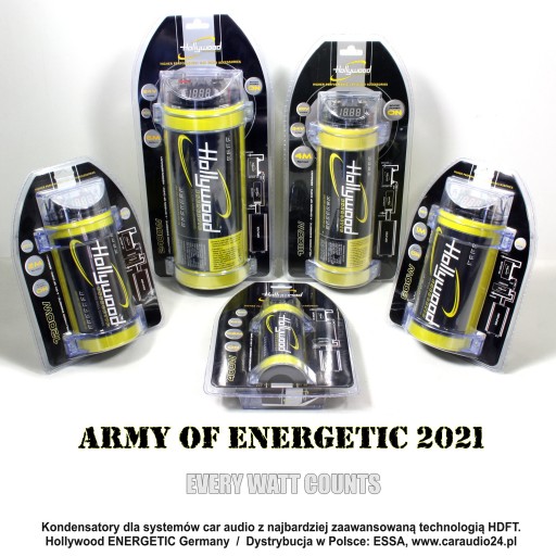 Bardzo wydajny kompaktowy kondensator o pojemności 1 Farad z woltomierzem niemieckiej marki Hollywood Energetic do poprawy stabilności i efektywności instalacji zasilającej system car audio. Dzięki zastosowaniu najnowszej technologii HDFT (High Density Foil Technology) ze zwiększoną gęstością wewnętrznych folii elektrodowych możliwe było uzyskanie wyższej wydajności i zarazem zredukowanie wymiarów kondensatora o ok. 1/3 w porównaniu ze starszymi konstrukcjami o podobnej pojemności.