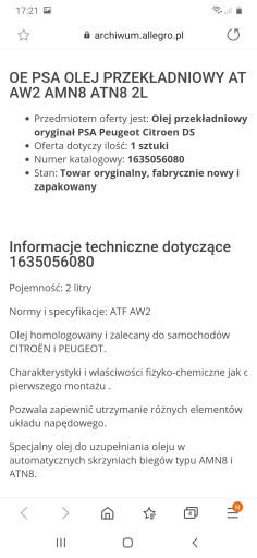 - Przedmiot: Olej przekładniowy oryginał PSA Peugeot Citroen DS