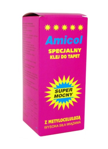 Tapetowanie: Klej rozprowadzić równomiernie na powierzchni tapety. Po posmarowaniu całej powierzchni, arkusz należy złożyć w stosunku 1/3 do 2/3. Tak złożony pas pozostawić do namoknięcia przez 5-10 min. Pasy tapety naklejamy wzdłuż linii pionowej zaczynając od okna. Tapetę należy docisnąć do powierzchni ściany za pomocą wałka usuwając pęcherze powietrza. Nadmiar kleju można usunąć czystą, wilgotna ścierką. Podczas klejenia należy przestrzegać zaleceń producenta tapet. Narzędzia po pracy myć cieplak lub zimną wodą.