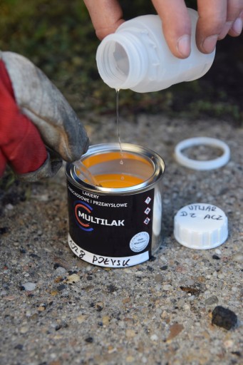 - Połączyć lakier z utwardzaczem i bardzo dokładnie wymieszać