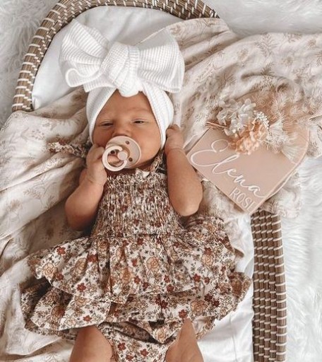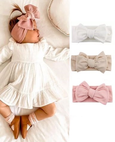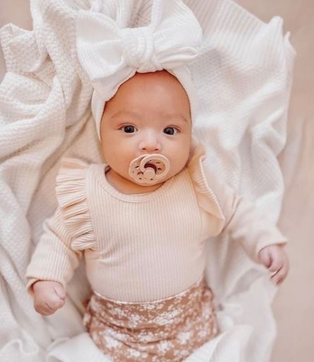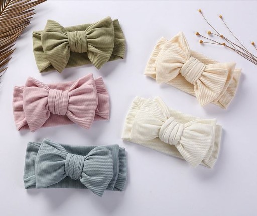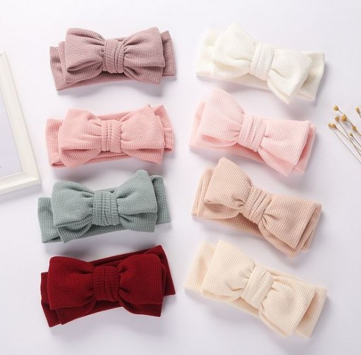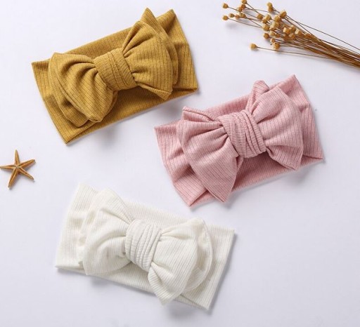 Efektowna ozdoba dziecięcej główki. Opaska rośnie wraz z dzieckiem, idealnie pasuje dla niemowlaka jak i dla starszego dziecka. Wykonana z przyjemnego materiału o strukturze prążkowanej.