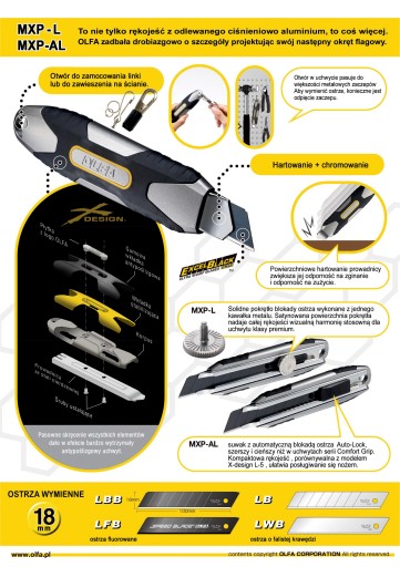 Model MXP-AL oferuje automatyczną blokadę ostrza w suwaku - Auto-Lock.