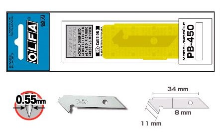 W rękojeści znajduje się pojemnik z 2 zapasowymi, jednostronnymi ostrzami PB-450 w komplecie.