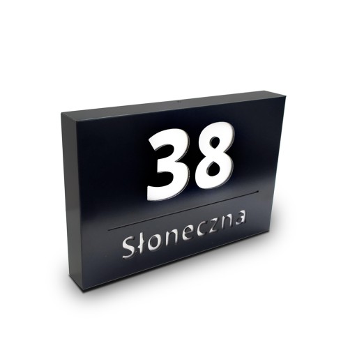 Tabliczka oświetlana jest podzespołami LED wiodących producentów, co gwarantuje ich długą żywotność. W tabliczce świeci tylko numer i nazwa!
