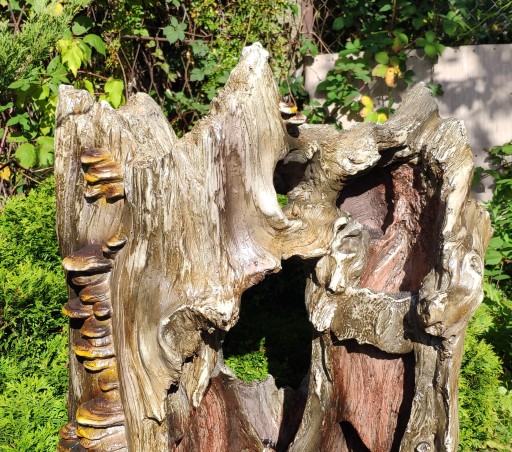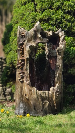 stylizowana na kształt starego wydrążonego pnia . Na bokach uformowane są małe huby, to te szczegóły