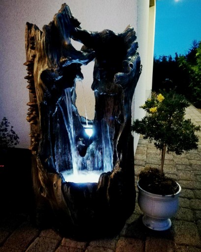 Każda nasza fontanna pracuje w obiegu zamkniętym, dzięki czemu nie potrzebuje stałego podłączenia do wody oraz kopania specjalnego zbiornika na wodę. W każdej chwili możemy ją przestawić i zmienić jej lokalizację. Wystarczy wlać do środka odpowiednią ilość wody, a pompę którą otrzymujemy wraz z fontanną, podłączamy do prądu. I gotowe! Co więcej, dzięki energooszczędnemu podświetleniu LED w fontannie, zachowamy wspaniały klimat za niewielkie pieniądze.