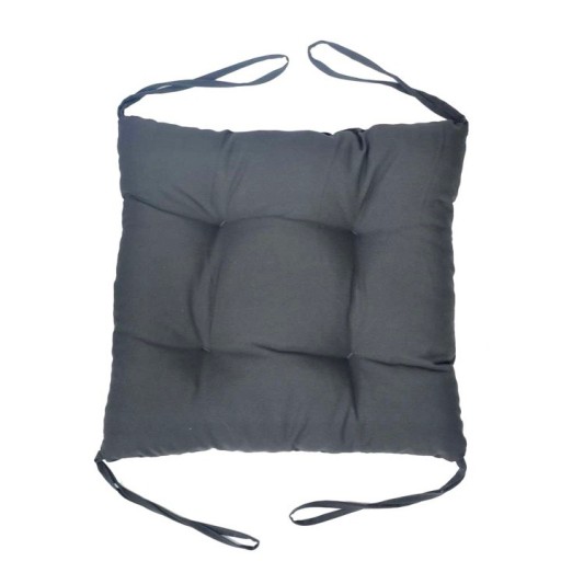 Cztery troczki w kolorze materiału pozwolą stabilnie przywiązać poduszkę do krzesła lub taboretu.