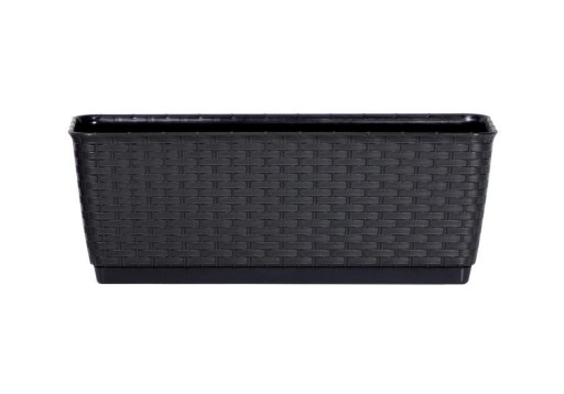 Doniczka o prostokątnym kształcie i strukturze przypominającej rattanowy splot. Wykonana z wysokiej jakości tworzywa sztucznego odpornego na zarysowania oraz promieniowanie UV.