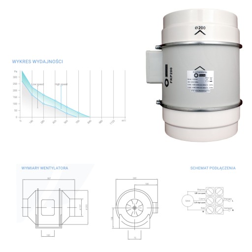 Wentylator osiowy Ferono CICHY 200 mm FKP200