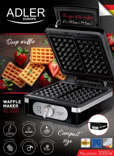 Gofrownica 2000W Adler na 2 duże gofry