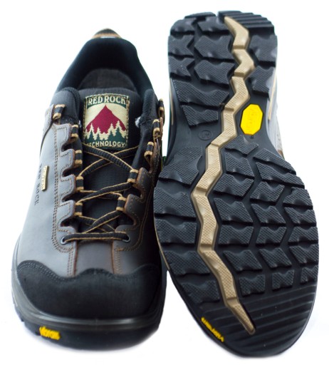 Niskie buty górskie Red Rock 12527 sprostają największym wyzwaniom. Nowe Red Rocki poradzą sobie na każdej nawierzchni, kamienie, błoto, śnieg czy lód nie stanowi dla nich problemu. Odpowiedzialna za to jest doskonała podeszwa Vibram, która dzięki twardej gumie oraz specjalnemu bieżnikowi doskonale "trzyma się" podłoża i daje użytkownikowi poczucie bezpieczeństwa. Cholewka wykonana została z wyselekcjonowanej skóry, a dzięki temu, że wzbogacono ją membraną Gritex jeszcze lepiej oddycha i jest w pełni wodoodporna. Wzmocnienie w części palcowej i na pięcie chroni nasze stopy przed uderzeniami. Specjalnie wycięta skóra na cholewce zasłania oczka na sznurowadła, dzięki czemu 12527 zyskał nieco nowocześniejszy wygląd.