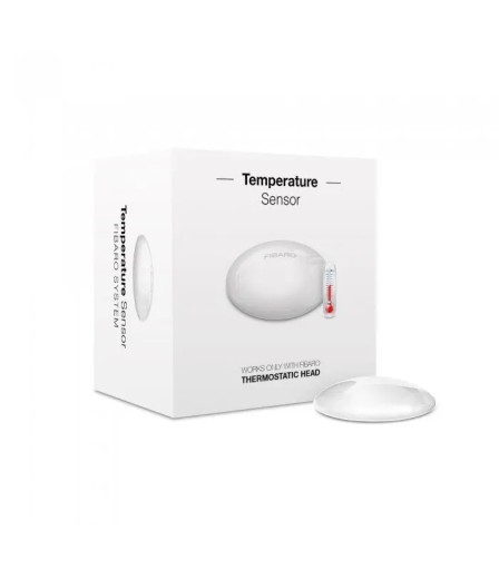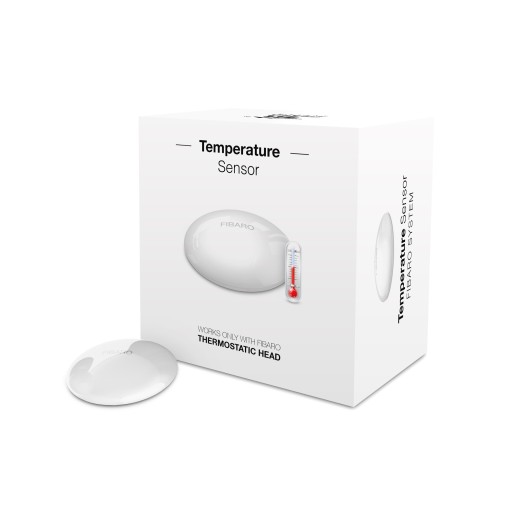 Urządzenie uzupełniające (opcjonalne) dla FIBARO Heat Controller. Pozwala na pomiar temperatury w pomieszczeniu poza samym termostatem (np. przy oknie, drzwiach lub łóżku dziecka).
