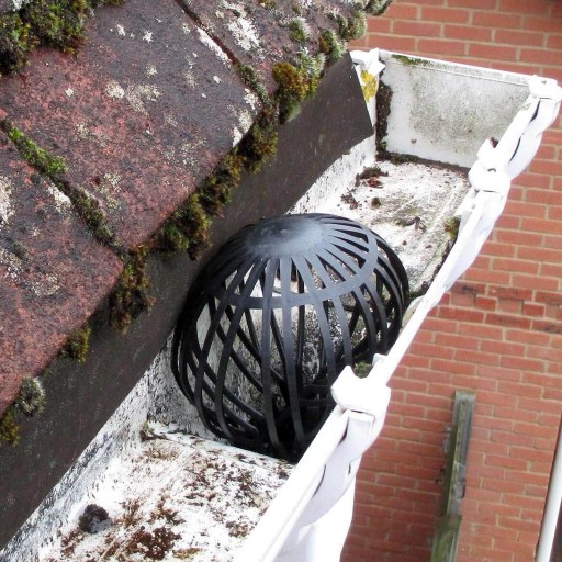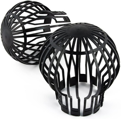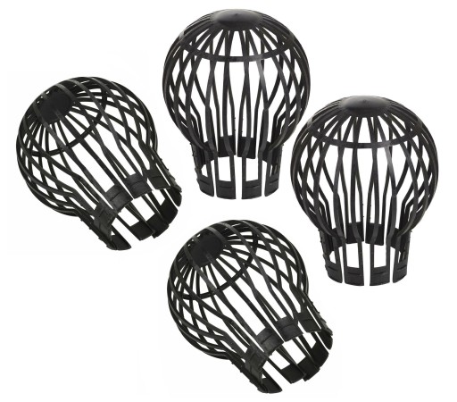 Koszyczki z elastycznego tworzywa zabezpieczające rurę spustową rynny przed zatykaniem.