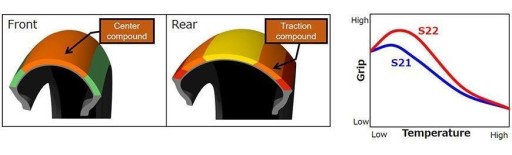 Bridgestone S22 została opracowana na podstawie doświadczeń Bridgestona z Moto GP.