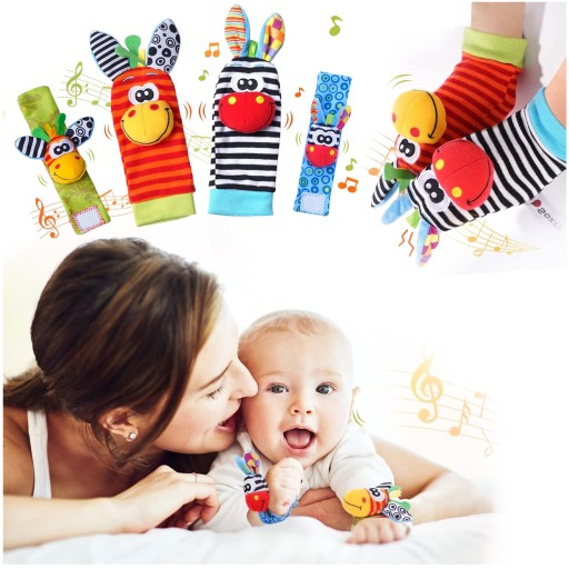 ✅ Grzechotki sensoryczne na rączki w postaci opasek oraz na nóżki w postaci skarpetek to idealne zabawki dla niemowląt.