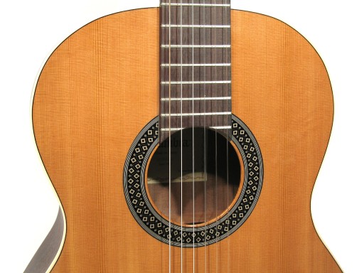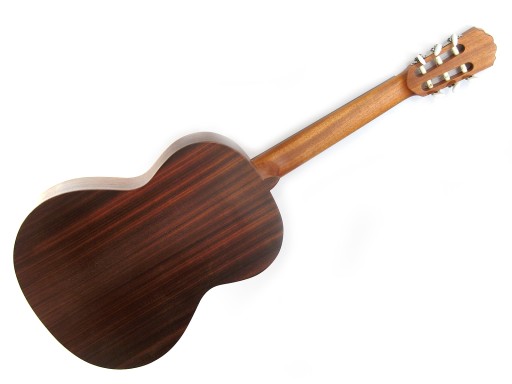 Ciekawostka: Czy wiesz że 99% gitar klasycznych nazywanych "hiszpańskimi" produkują Chiny? To dlatego, że nazwa "gitara hiszpańska" stała się synonimem każdej gitary klasycznej o tych kształtach i wymiarach. Choć na zdjęciach są identyczne, to jednak bardzo się różnią w wielu aspektach. Tu mamy po pierwsze prawdziwą gitarę hiszpańską wykonaną w Hiszpanii, a po drugie powstała ona w jednej z najlepszych manufaktur z ogromnymi tradycjami. Instrument ten posiada więc prawdziwą duszę ojczyzny gitar klasycznych i autentyczne hiszpańskie brzmienie. Jeszcze jedna zaleta produkcji europejskiej nad chińską jest taka, że nie płynie to miesiąc z Azji przez tropiki w mokrym kontenerze. Większość chińskich gitar ma przez to już od nowości powypaczane i uszkodzone gryfy. Gitara hiszpańska ma idealny relief gryfu, a progi nie wyłażą z podstrunnicy.
