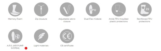 TPU Dual-Flex antywibracyjna EVA nylonowa międzypodeszwa z elastycznym przednim panelem dla lepszej czułości i stabilności na motocyklu.