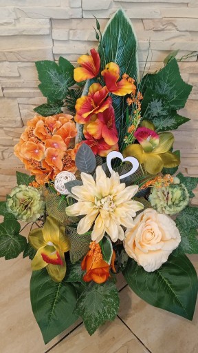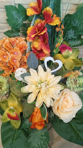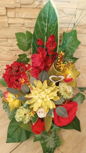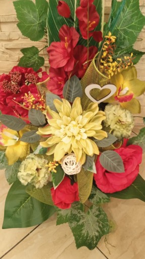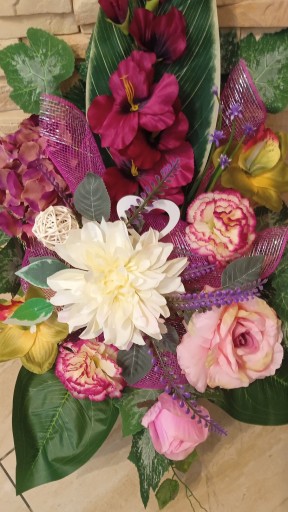 (cena dotyczyTYLKO bukietu do wazonu, natomiast kompozycja do postawienia na grobie dostępna na innej aukcji )