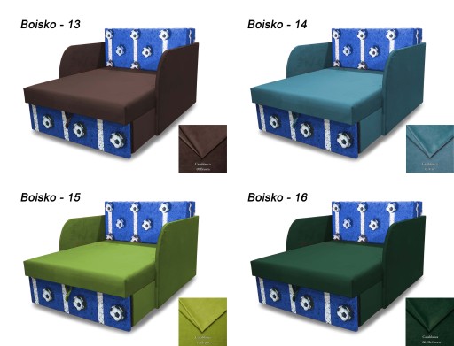 Dzięki zastosowaniu dwóch poduszek, wykonanych na wytrzymałej ramie drewnianej, łóżko można rozłożyć w 3 różnych długościach.