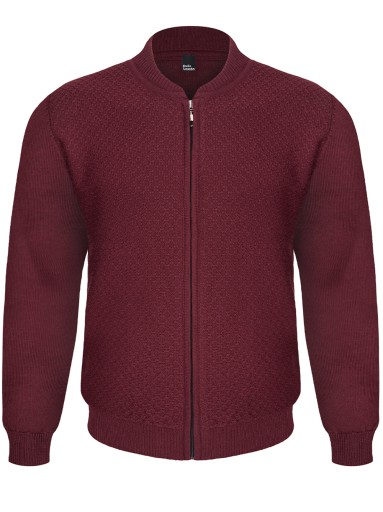 Modny sweter męski w rozpinanym wydaniu wykonany z wełny Merino - ŚLIWKOWY.