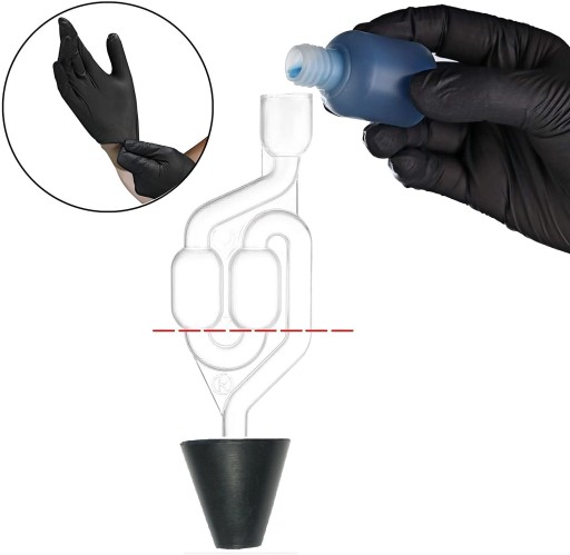 1. Napełnij przyrząd płynem reakcyjnym ok 2ml do poziomu pod komorami testera ☑️