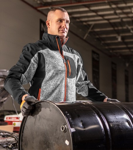 Wzmocnienia z materiału softshell na barkach, rękawach i bokach zapewniają wyższą odporność na uszkodzenia mechaniczne.